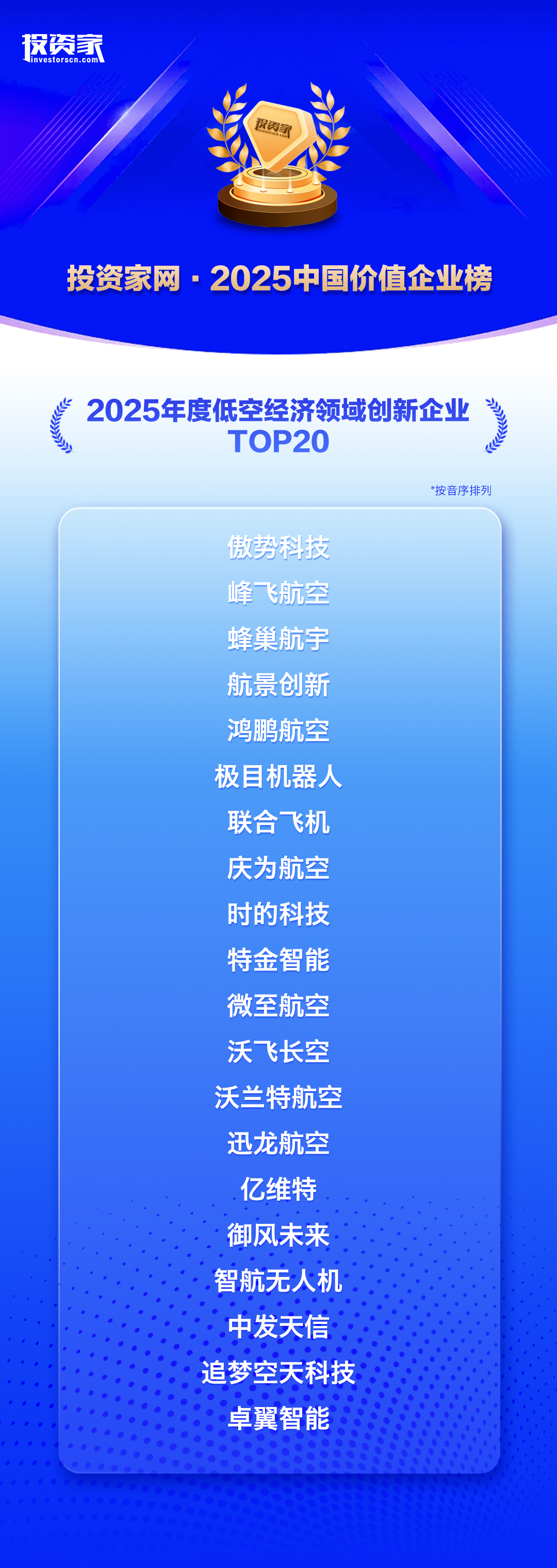 庆为航空与国内优秀同仁荣登2025年度低空经济领域创新企业榜
