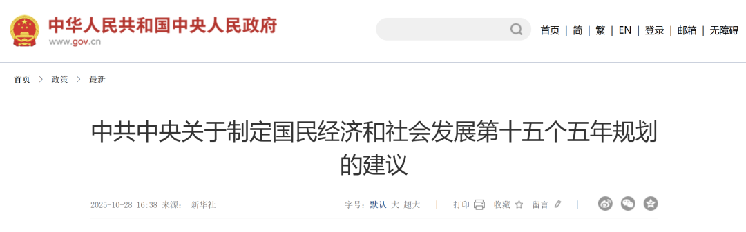 “十五五”规划建议全文公布:加快新能源、新材料、航空航天、低空经济等战略性新兴产业集群发展;加强低空等新兴领域国家安全能力建设